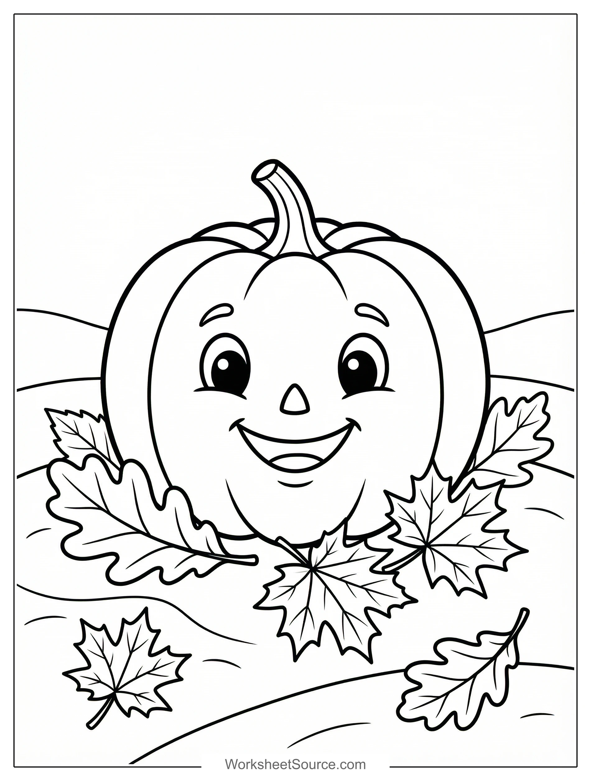 Download this free printable Pumpkin With Leaves coloring page for kids. Great for classroom activities, home learning, and creative fun.