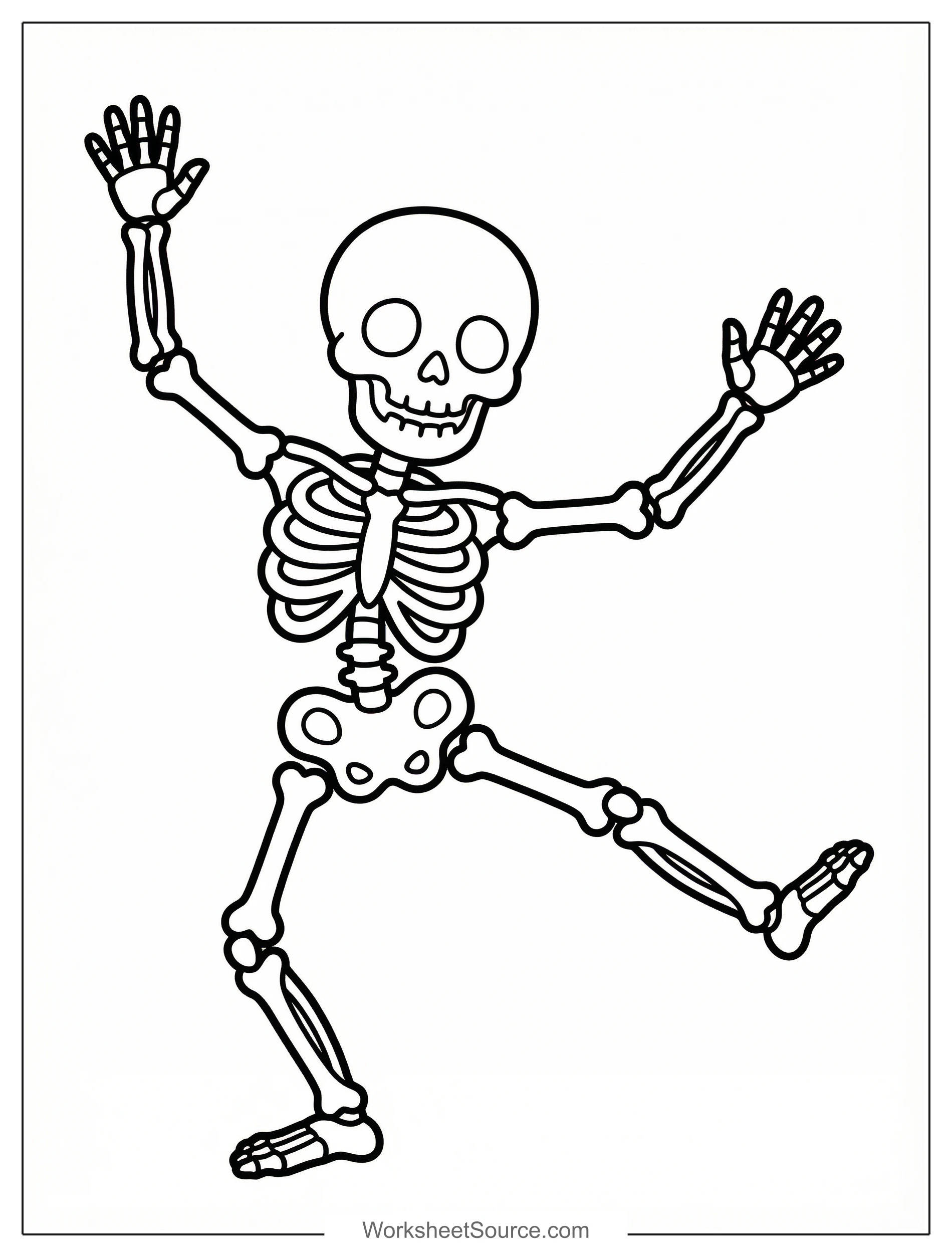 Download this free printable Dancing Skeleton coloring page for kids. Great for classroom activities, home learning, and creative fun.
