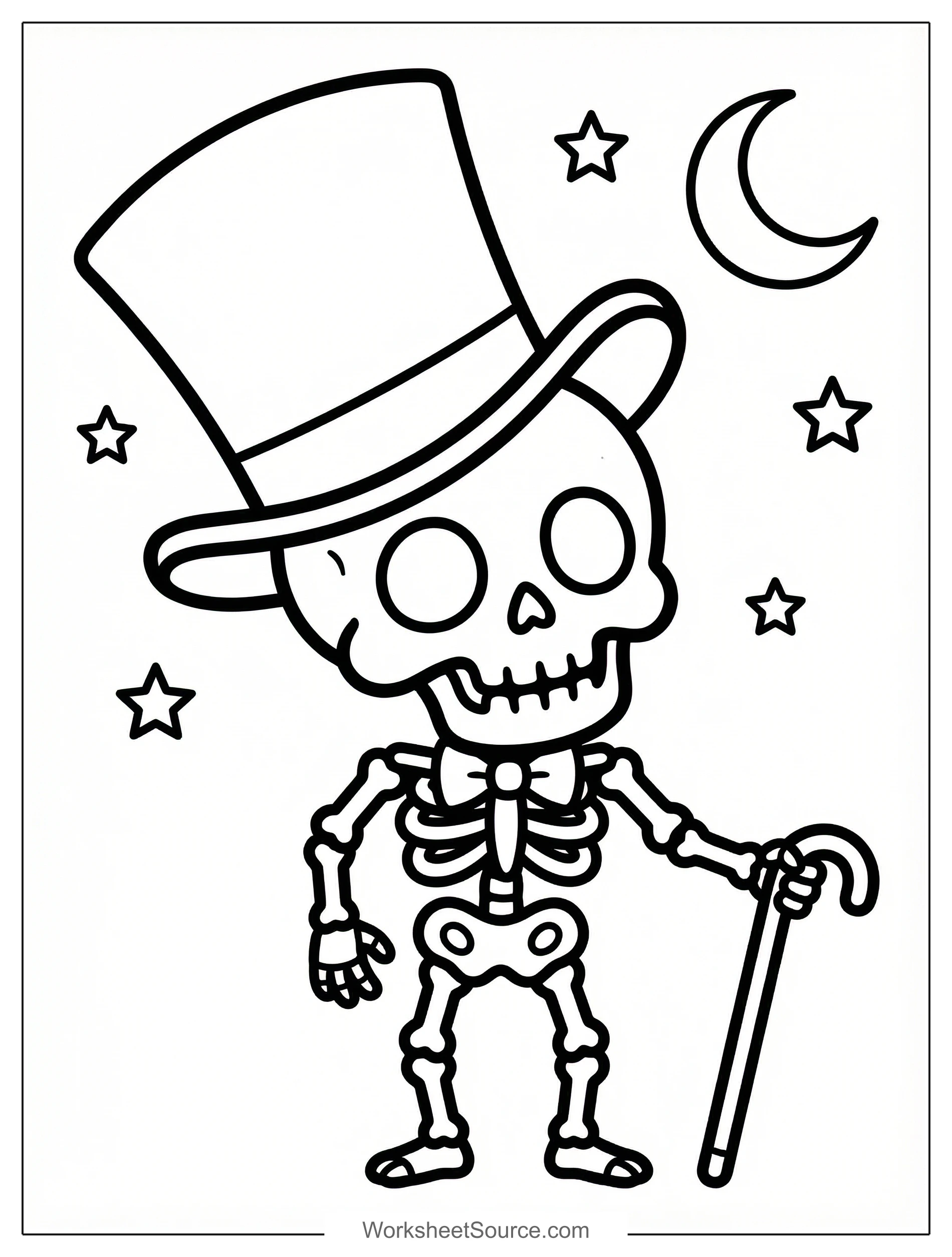 Download this free printable Skeleton With Hat coloring page for kids. Great for classroom activities, home learning, and creative fun.