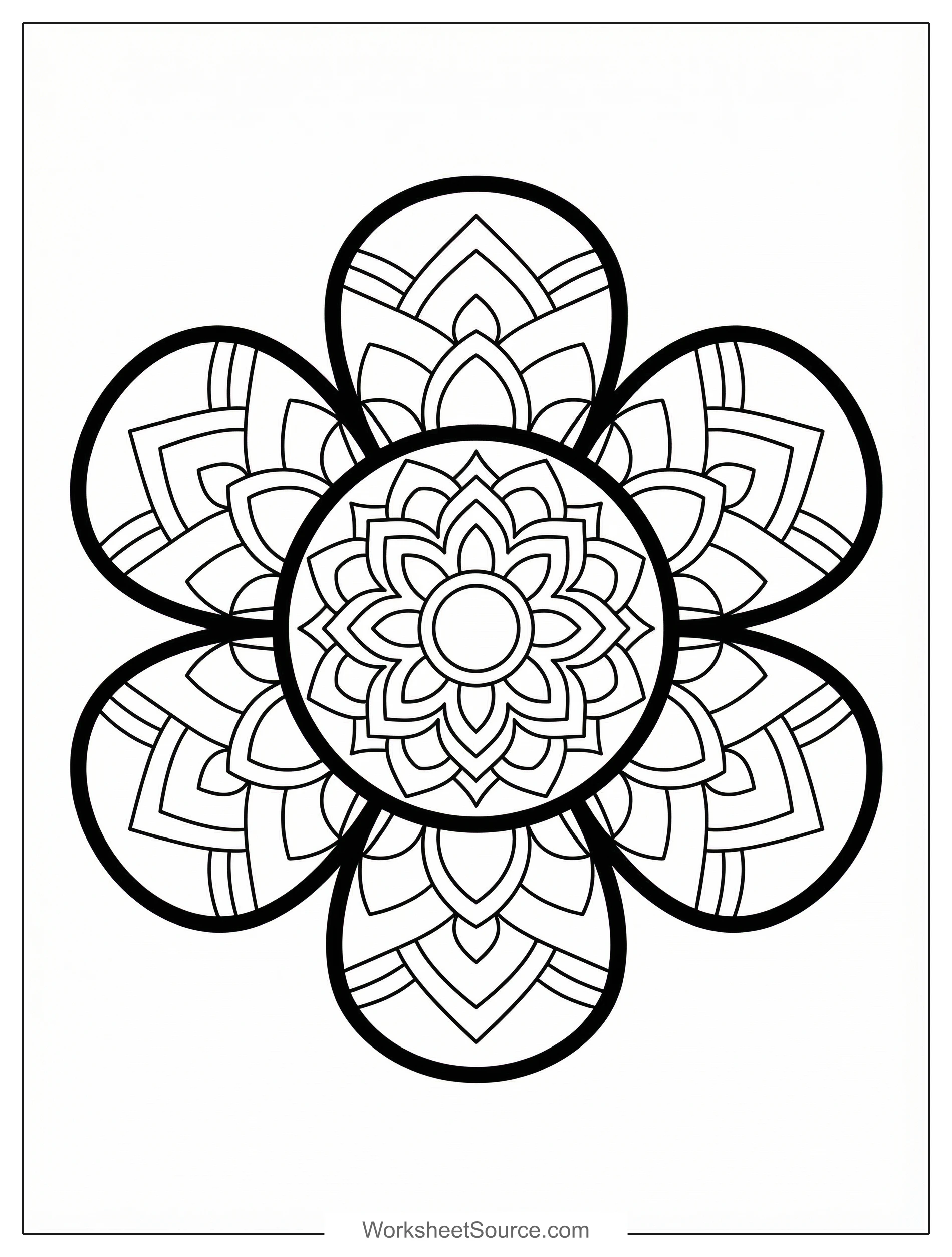 This ornate mandala coloring page is a joy to explore, and it invites calm and creativity at the same time. The repeating petal patterns give children a satisfying rhythm to follow and make it easy to try color schemes that flow from the center outward. For classroom use, place the printed pages at an art center for independent work, then display finished pages on a bulletin board to brighten the room. At home, it is perfect for a rainy afternoon, a quiet activity after school, or a family coloring night where everyone picks a color and contributes to a shared palette. Try pairing the mandala with a short story about flowers and shapes, or ask children to write a sentence about how their color choices make them feel. For a group project, divide the mandala into sections and have each child color one petal, then combine the pieces for a collaborative mural. This printable is free and flexible, and it encourages exploration of color, pattern, and personal expression.