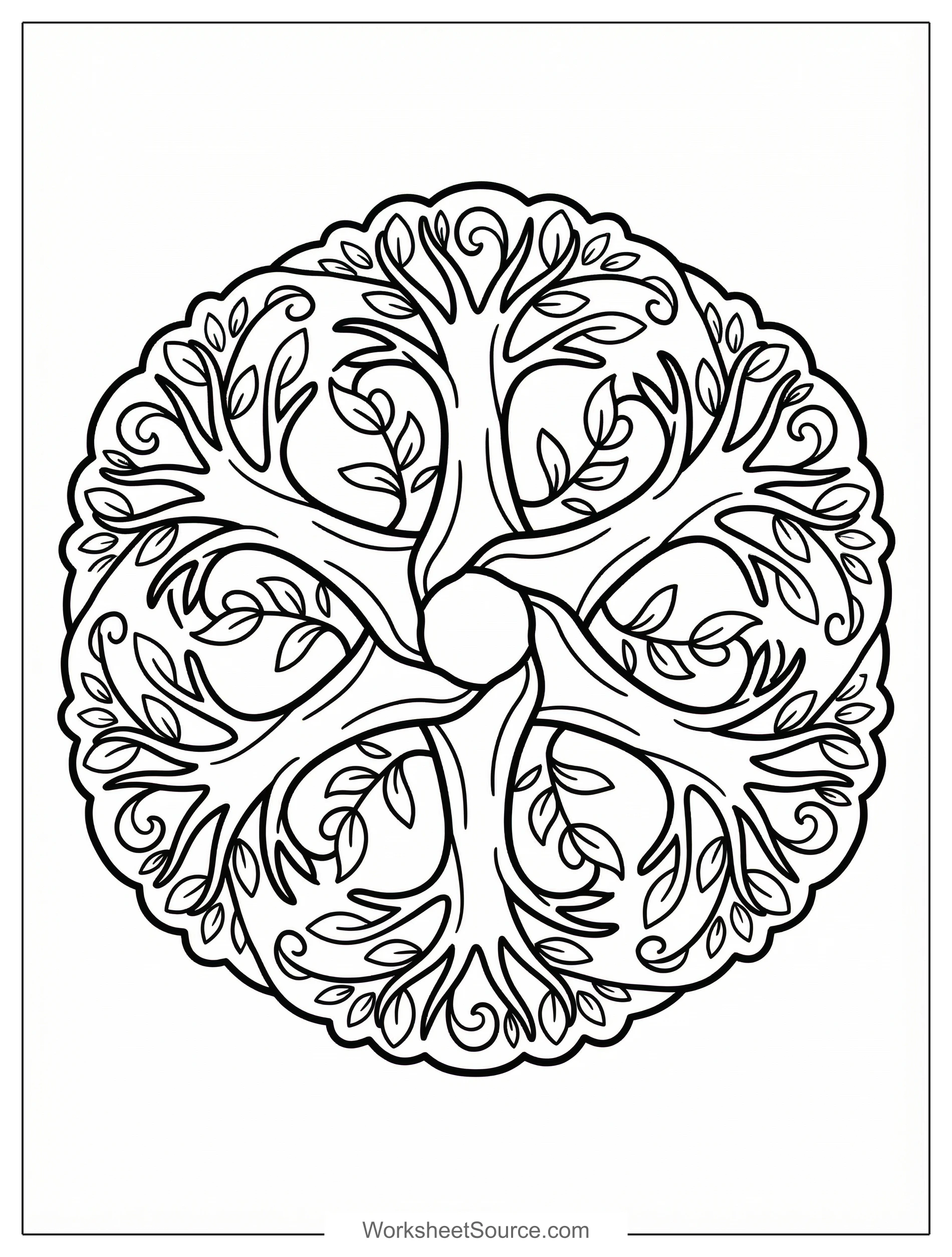 Download this free printable Tree Mandala coloring page for kids. It is great for classroom activities, home learning, and creative fun.