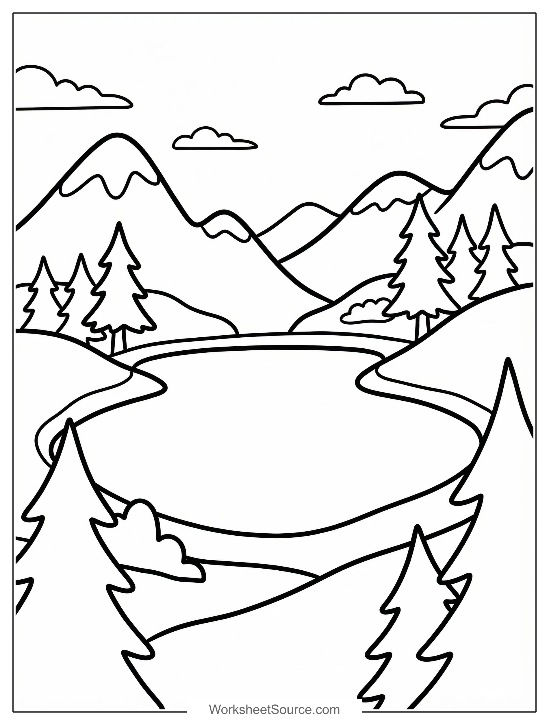 Download this free printable Mountain Lake coloring page for kids. Great for classroom activities, home learning, and creative fun.