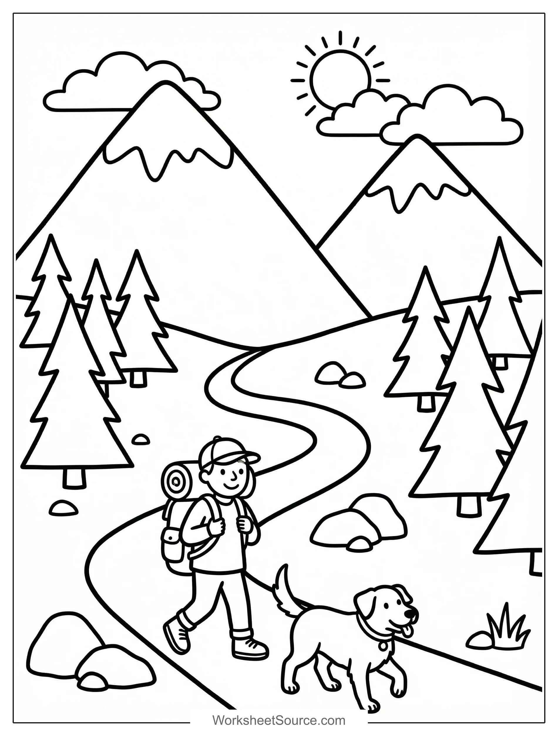 Download this free printable Mountain Trail coloring page for kids. Great for classroom activities, home learning, and creative fun.