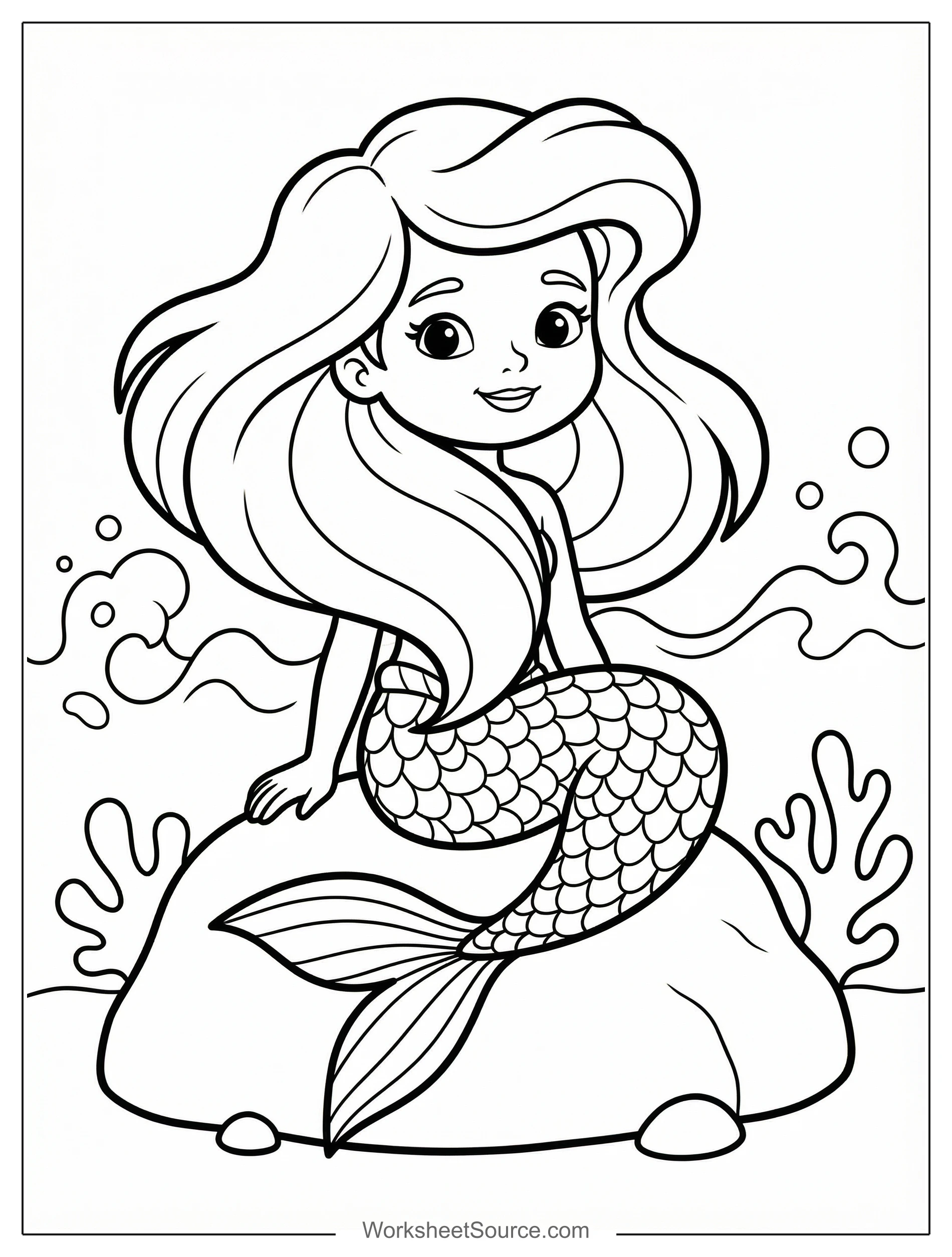 Download this free printable Mermaid With Long Hair coloring page for kids. Great for classroom activities, home learning, and creative fun.
