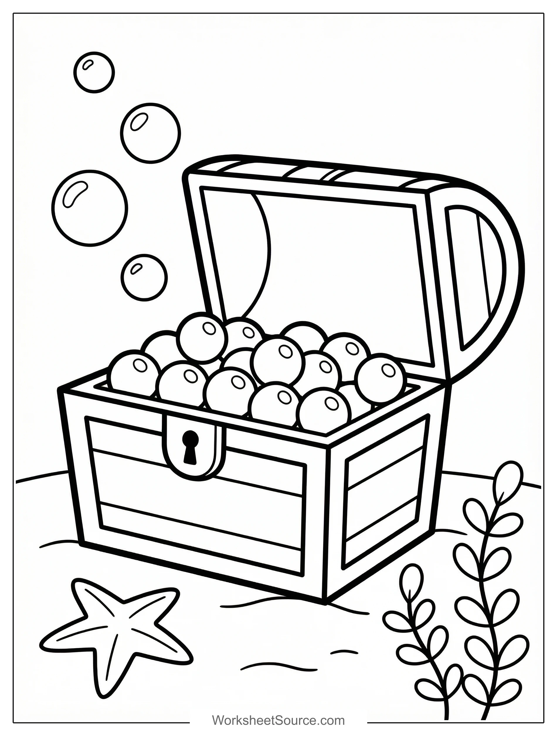 Download this free printable Underwater Treasure Chest With Pearls coloring page for kids. It is great for classroom activities, home learning, and creative fun.