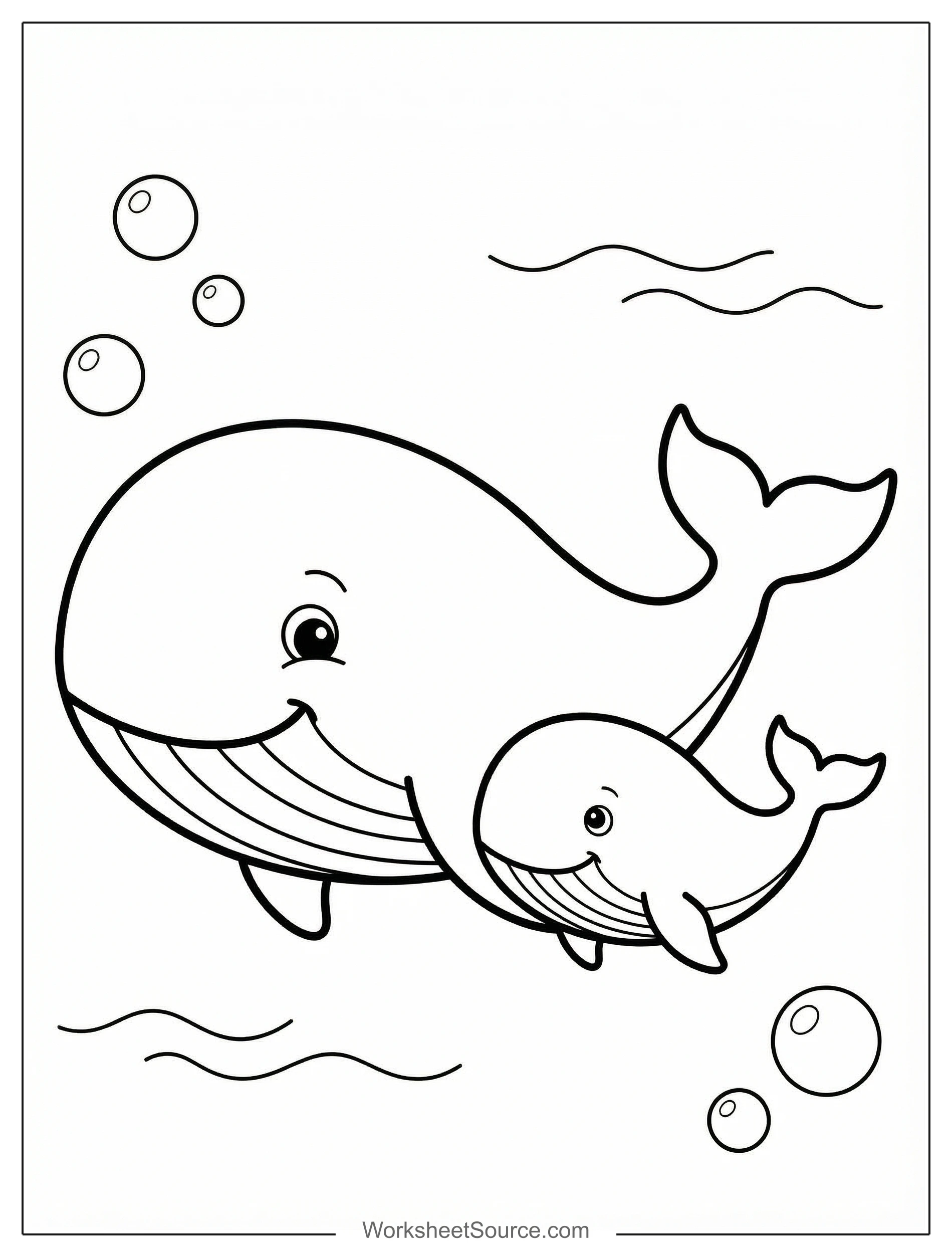 Download this free printable Baby Whale With Mom coloring page for kids. It is great for classroom activities, home learning, and creative fun.