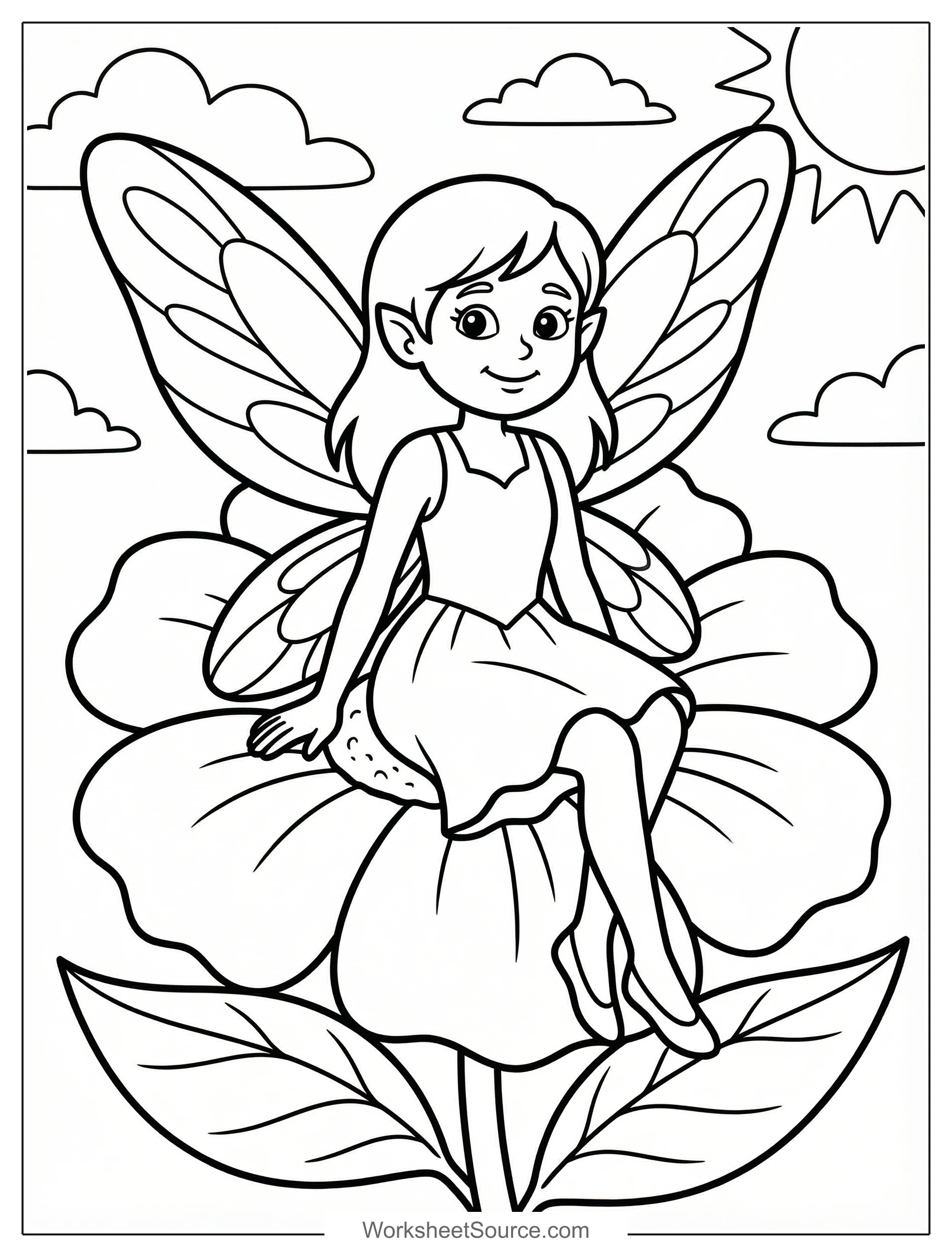 Download this free printable Fairy On Flower coloring page for kids. Great for classroom activities, home learning, and creative fun.