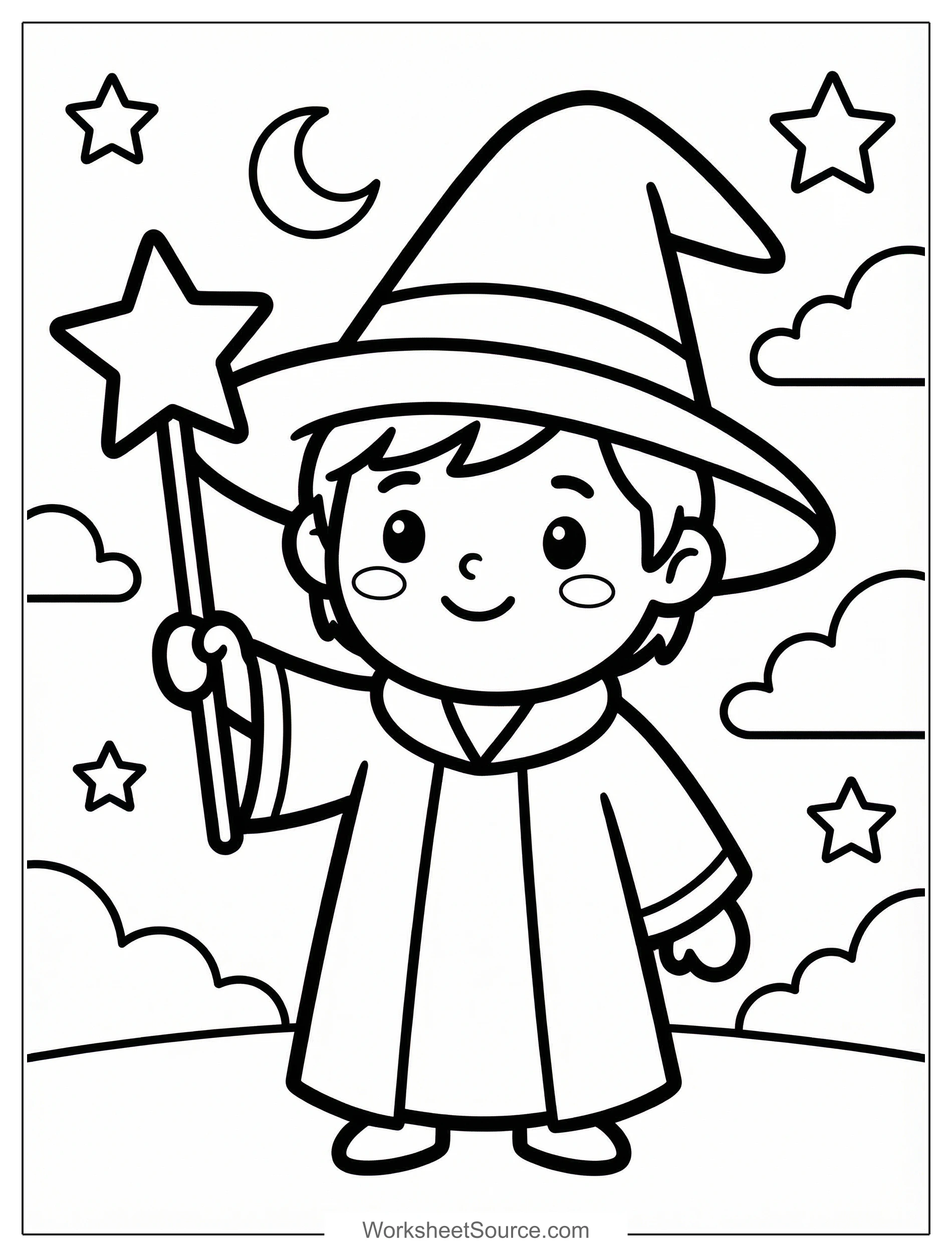 Download this free printable Magic Wand coloring page for kids. Great for classroom activities, home learning, and creative fun.