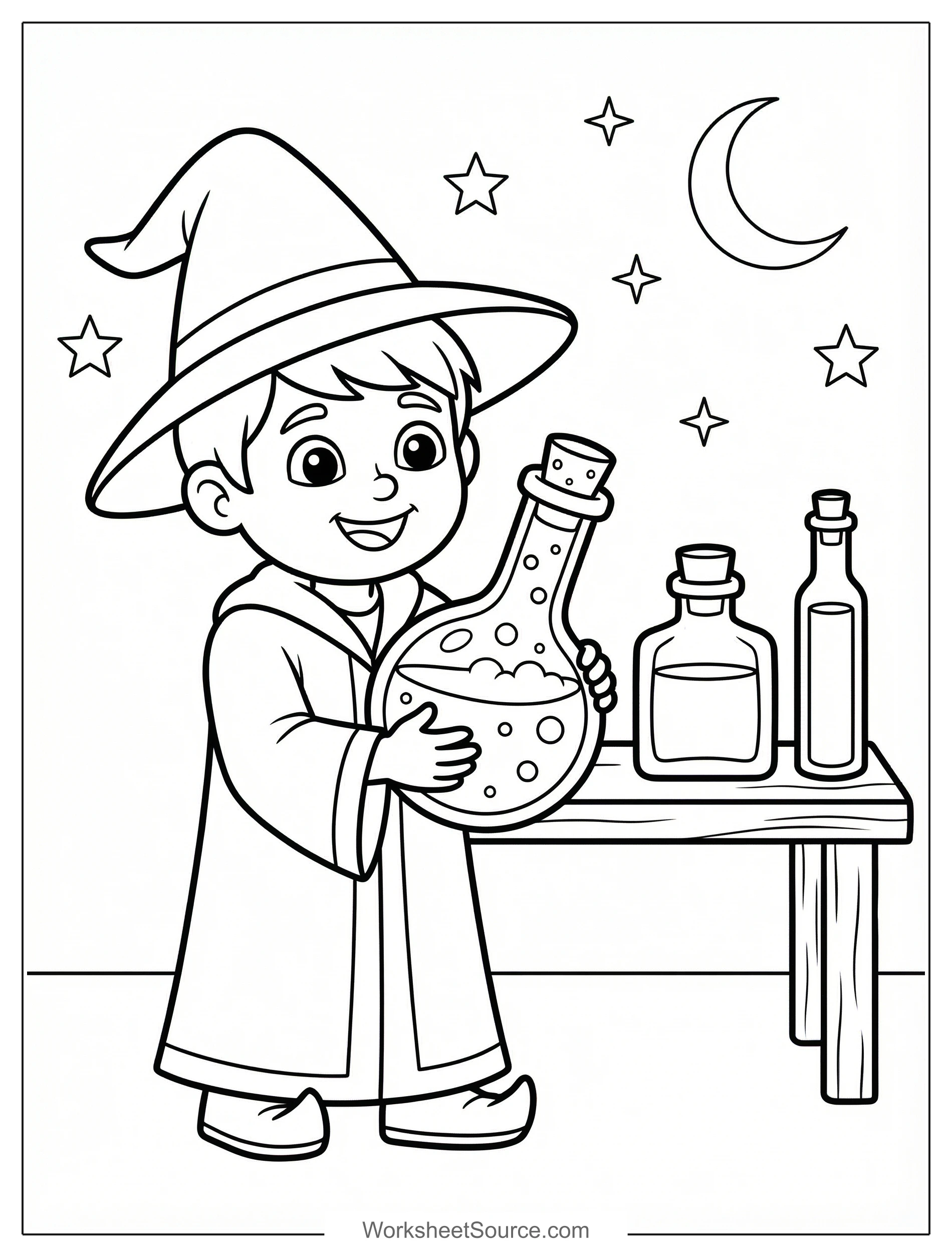 Download this free printable Potion Bottles coloring page for kids. Great for classroom activities, home learning, and creative fun.