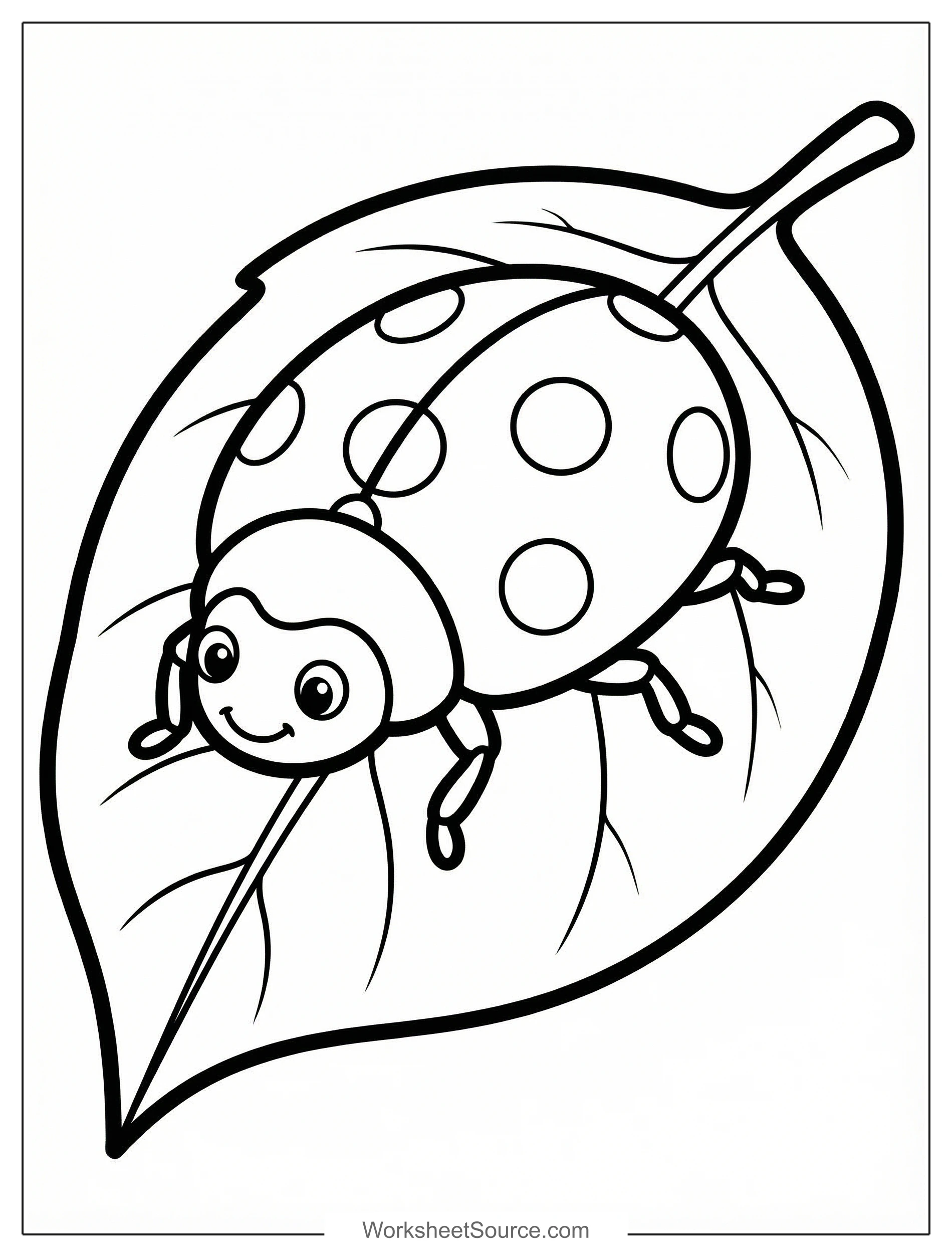 Download this free printable Ladybug On Leaf coloring page for kids. Great for classroom activities, home learning, and creative fun.