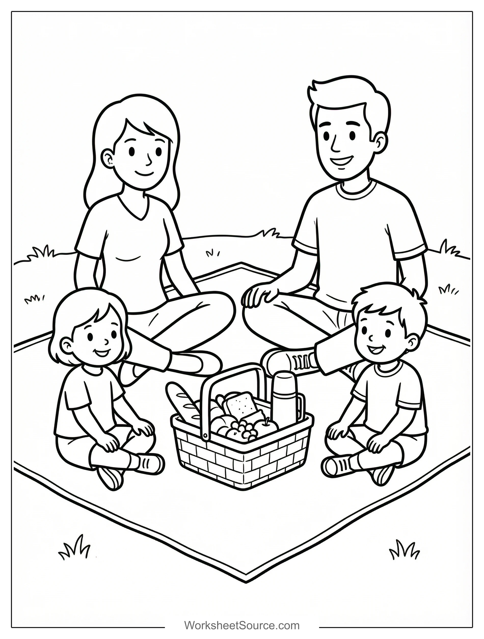 The Spring Picnic coloring page brings a simple outdoor scene to life and invites storytelling while children color. Imagine the picnic blanket spread on soft grass, a woven basket full of snacks, and a family smiling together. Point out small details like the thermos, a slice of bread, and the pattern on the blanket, and challenge children to name colors and describe textures. In the classroom, try a bulletin board display called Picnic Day where each child colors a square of a blanket and the pieces are joined into one large mural. At home, use this printable on rainy afternoons to spark conversation about favorite picnic foods and outdoor games. Pair the page with a short read aloud about spring, or ask kids to write a sentence about what they would bring to a picnic. For group projects, have children trade pages and add matching backgrounds. This activity is free and printable, it builds vocabulary, encourages observation, and keeps creative hands busy while celebrating spring.