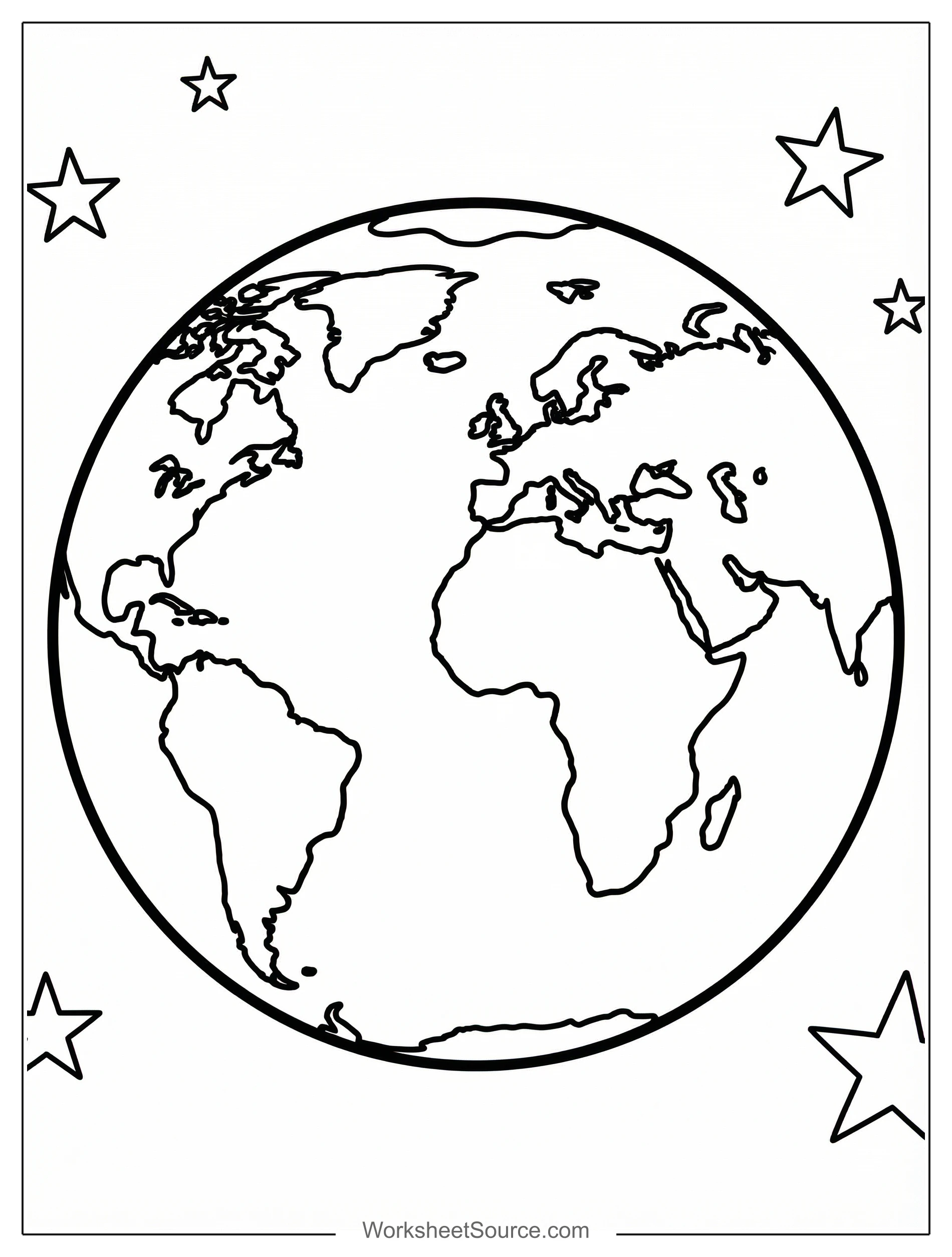 Download this free printable Earth From Space coloring page for kids. Great for classroom activities, home learning, and creative fun.