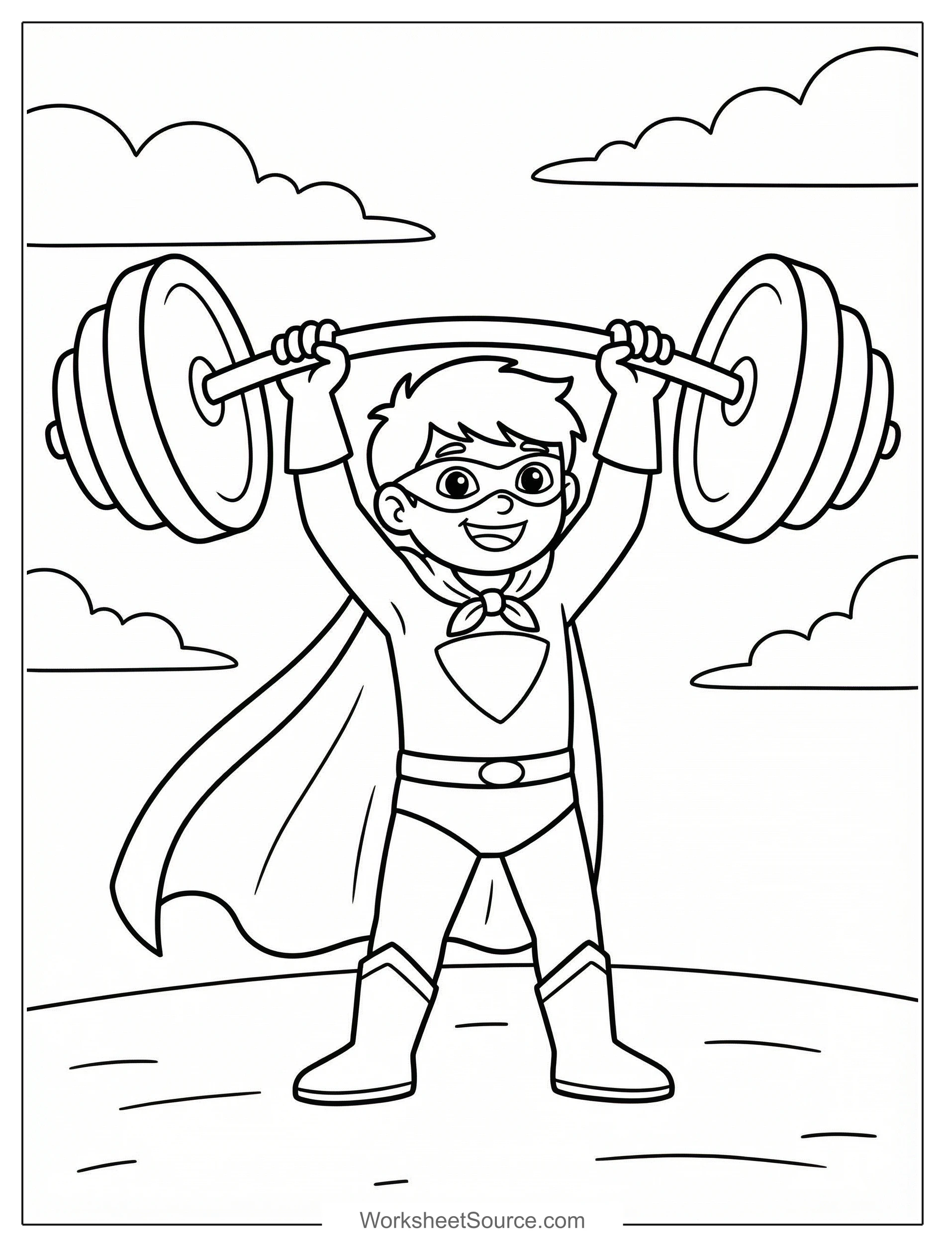 Download this free printable Strong Hero Lifting Heavy Objects coloring page for kids. Great for classroom activities, home learning, and creative fun.