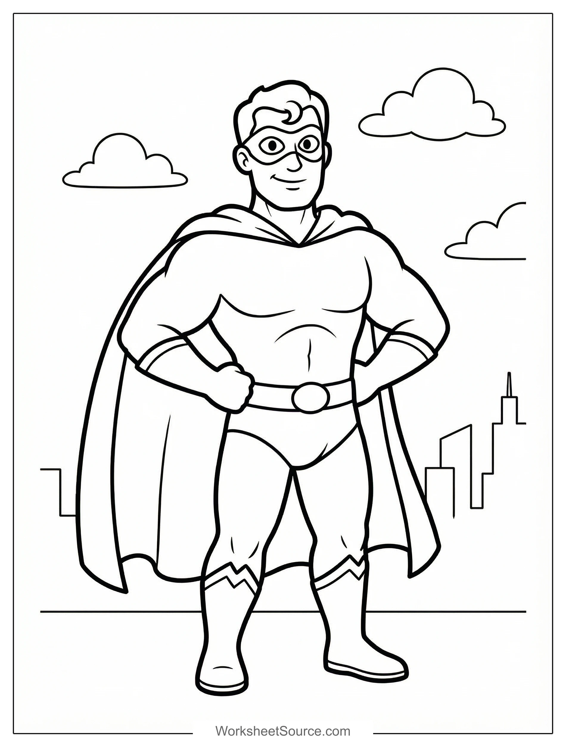 Download this free printable Superhero With Cape and Mask coloring page for kids. Great for classroom activities, home learning, and creative fun.