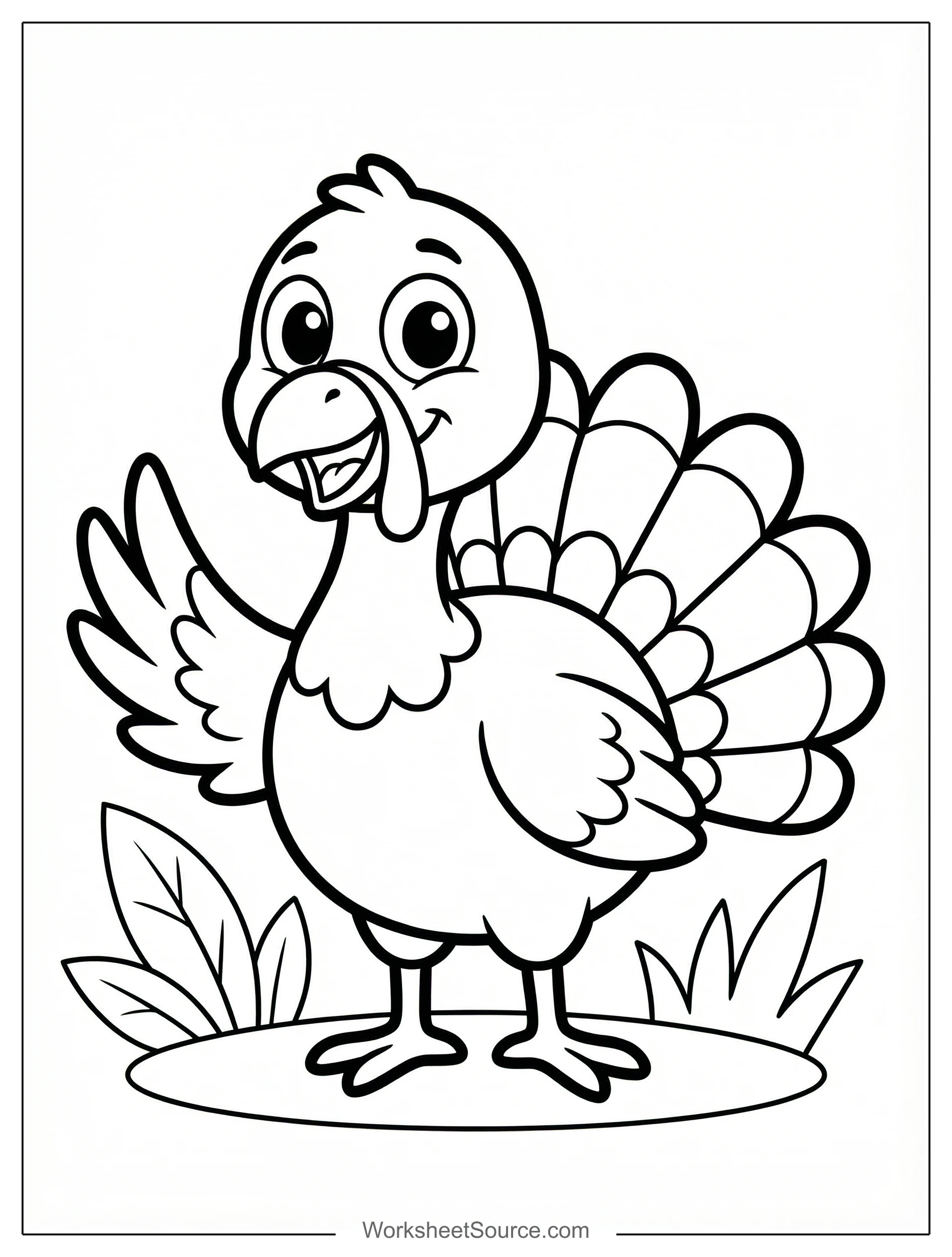 Download this free printable Cartoon Turkey Waving coloring page for kids. Great for classroom activities, home learning, and creative fun.