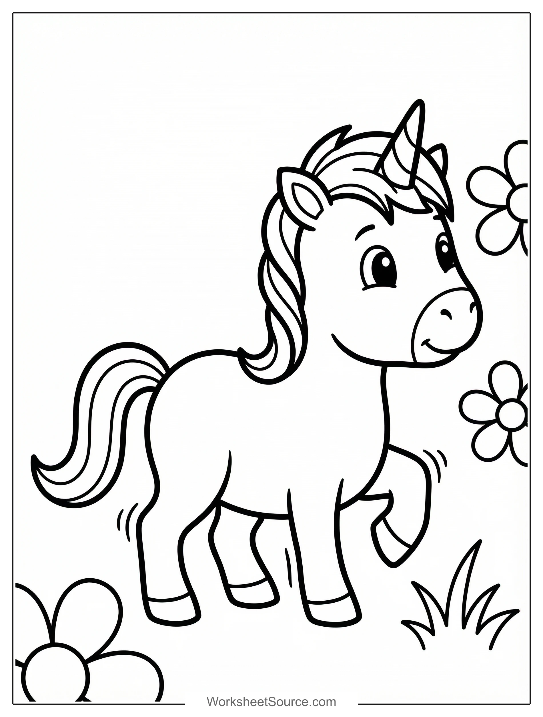 Baby Unicorn First Steps Coloring Page