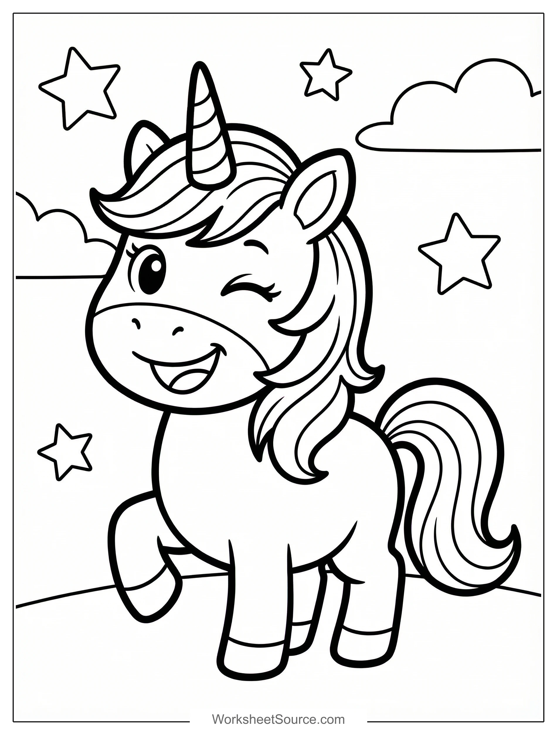 Cute Unicorn Winking Coloring Page