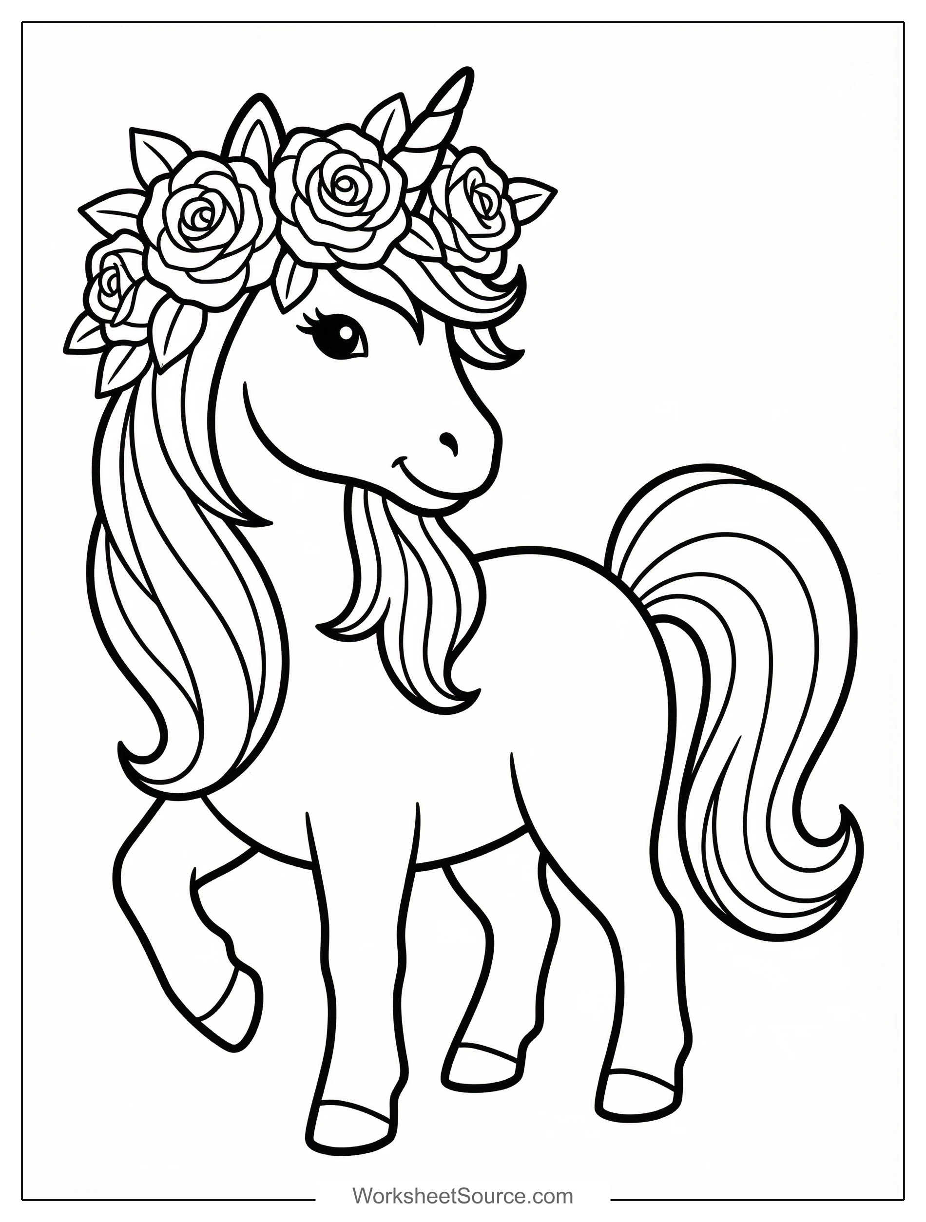 Unicorn With Rose Crown Coloring Page